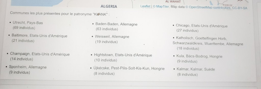 Le site Généanet recense la présence d’individus selon le nom de famille.