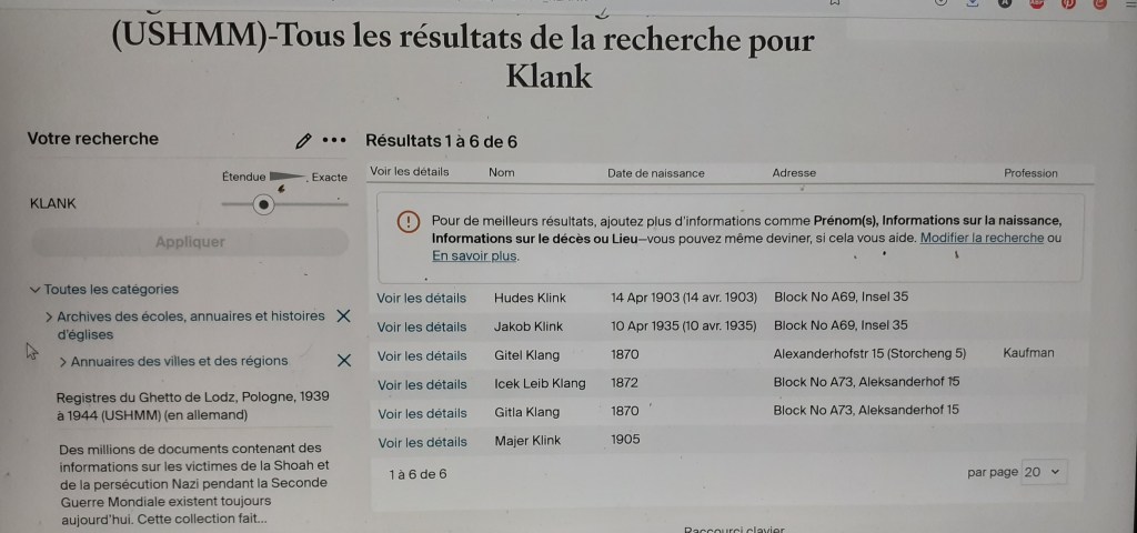 Ancestry a fait un recensement avec une recherche nominative. Jacob n’est pas décédé au ghetto.